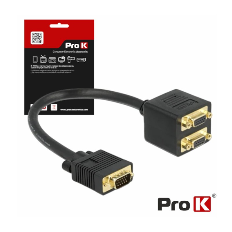 Cabo Adaptador Vga M/F/F Dourado Prok